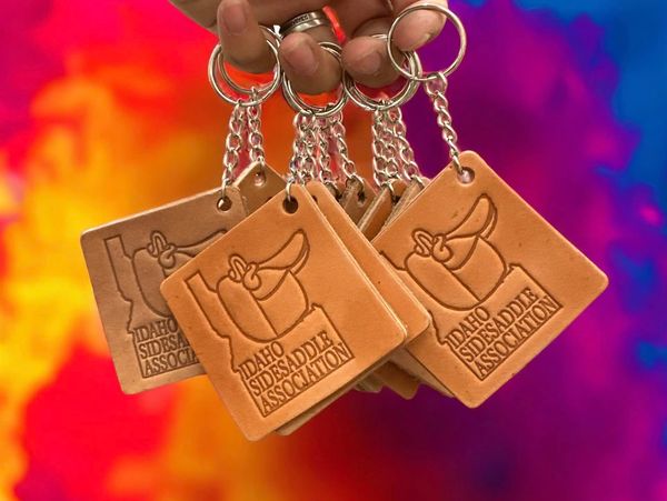 Show your support with these fun leather stamped keychains made by Holly Saddlery.